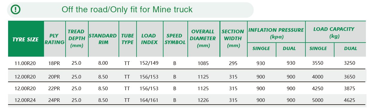• Off the road/Only fit for Mine truck