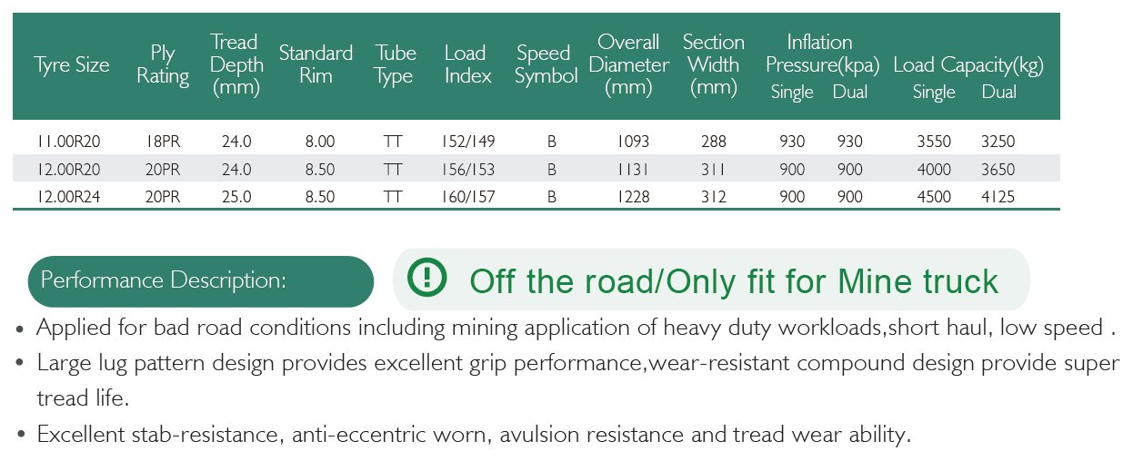 • Off the road/Only fit for Mine truck